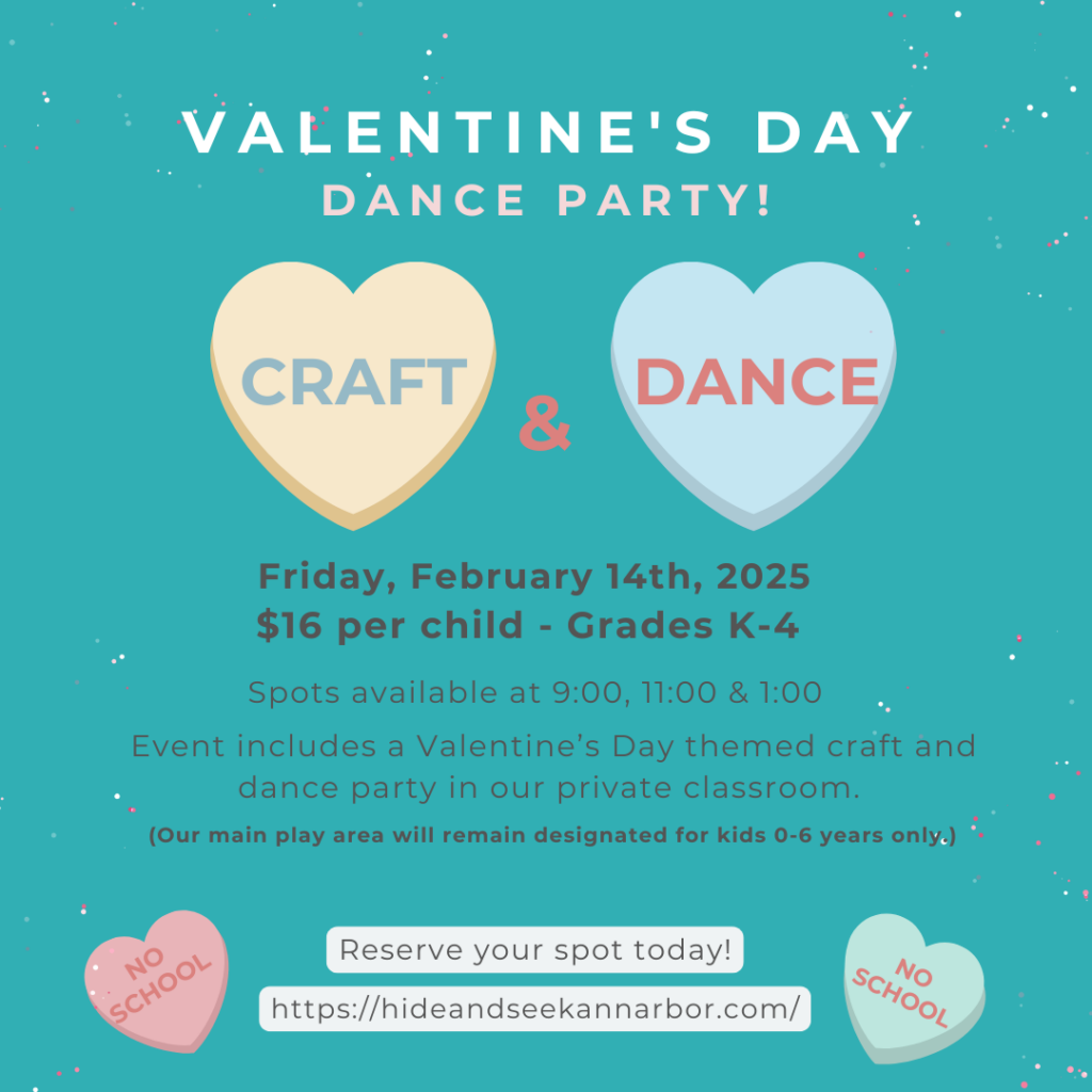 Whatever the reason bring your school-aged kiddo to Hide and Seek for some play time!